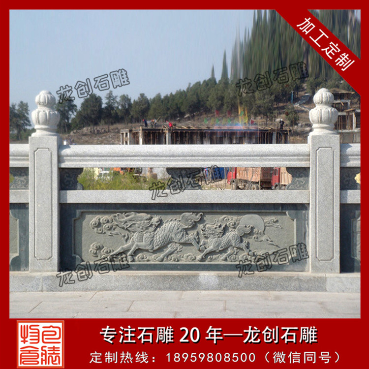 我們都知道青石欄桿有簡單、耐看、堅固的特性,因此青石欄桿加工被廣泛地用在橋梁構(gòu)架上和建筑方面的做安全設(shè)備用。在我國古代著名的建筑物中的護(hù)欄基本上選用的都是石護(hù)欄,如天安門金水橋上的漢白玉欄桿、盧溝橋上的石獅子欄桿、趙州橋上的橋欄桿等等,在這些著名的工程上,石欄桿起到了十分重要的裝飾效果和防護(hù)效果。