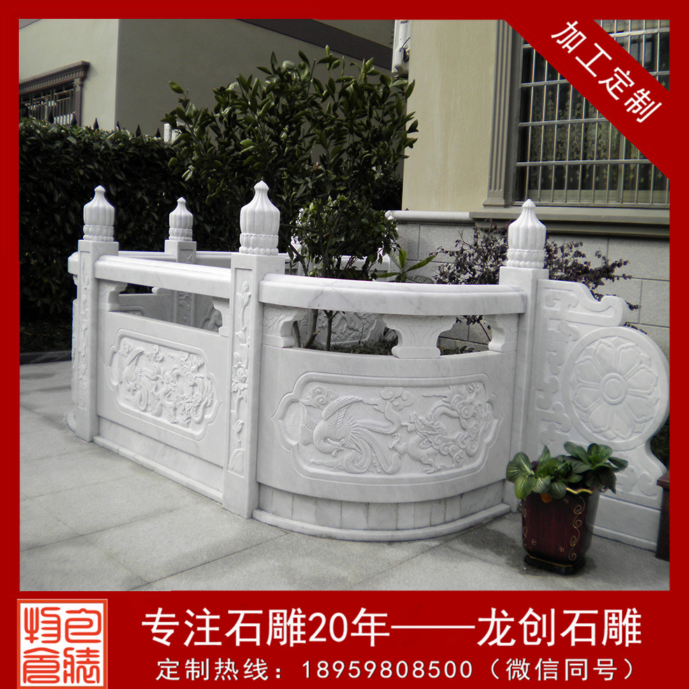 石欄桿價格才幾百元一米,有的石欄桿價格幾千元一米,價格差別很大,主要是雕琢工藝和石欄桿圖片款式,不過有的地方合適簡易的,有的地方合適貴的,這些都是石欄桿安裝的重要因素。大理石欄桿安裝價格,石欄桿安裝多少錢一米,這些都可以來電咨詢龍創石雕經理。