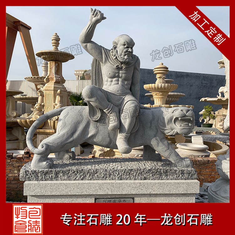 佛教寺廟石雕十八羅漢雕塑一般采用天然石材加工制作而成,有花崗巖(芝麻白、芝麻黑、芝麻灰、蝦紅)、青石等,有的則會用漢白玉石材制作。用于室外擺放石雕十八羅漢像通常建議用花崗巖石材雕刻,按順序擺放在兩側。漢傳佛教的石雕十八羅漢隨著雕塑文化的發展,造型有立像、坐像、坐立結合的三種雕刻方式。從雕刻工藝上區分有浮雕、圓雕、透雕、線雕等,只要質量做工好,不論采用何種形式,都可以按照寺院的需求,很好的將十八羅漢文化表達出來。