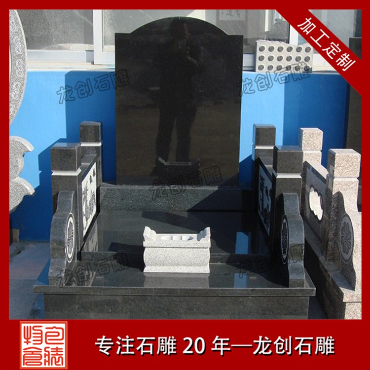 石雕墓碑一般是主碑板為花崗巖山西黑材質,其他部件如底座、蓋板一類的采用其他石材替代多一些,如青石、芝麻黑或者泉州紅等等。通過巧妙地利用兩種或者兩種以上的石材搭配,既明顯體現了山西黑墓碑的優勢,又盡可能地降低了墓碑的制作成本,為客戶節省開支。定做花崗巖山西黑墓碑,現在很多人都是找福建惠安墓碑廠,質量工藝好,放心又靠譜。