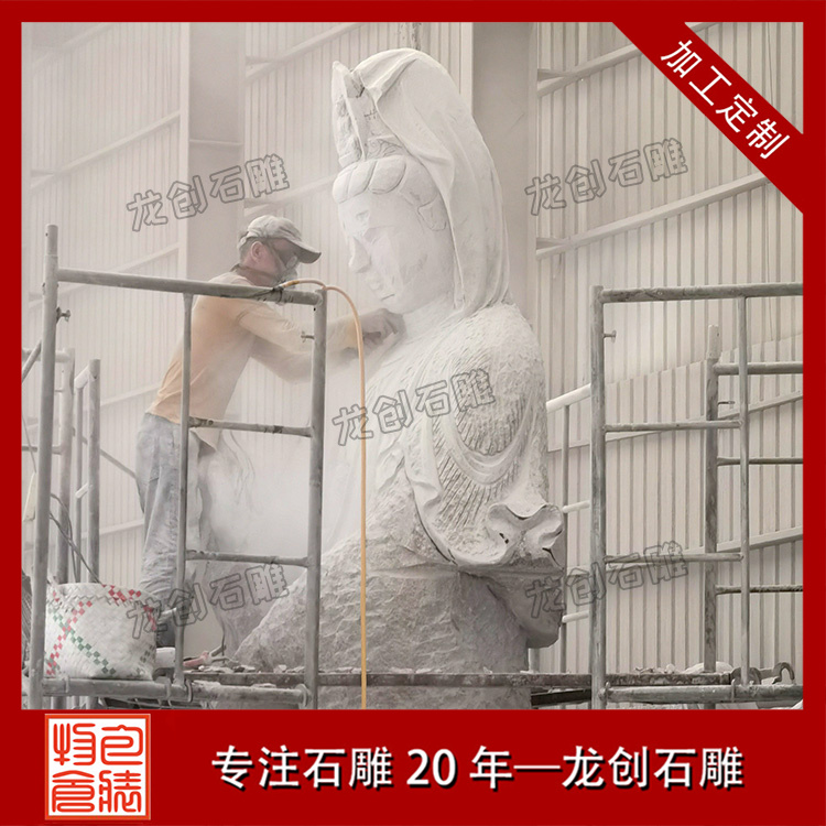 龍創石雕采用半手工半機械的制作工藝,結合匠人的精湛技藝,確保每一尊石雕觀音都能達到藝術效果。雕刻過程中,匠人們需細心觀察石材的紋理與色彩,巧妙利用其自然形態,賦予石雕觀音以生命與靈魂。從輪廓的勾勒到細節的雕琢,每一個步驟都凝聚著匠人的心血與汗水。他們通過手中的刻刀,將觀音菩薩的慈悲與智慧,化作一件件栩栩如生的石雕藝術品,讓觀者無不為之動容。
