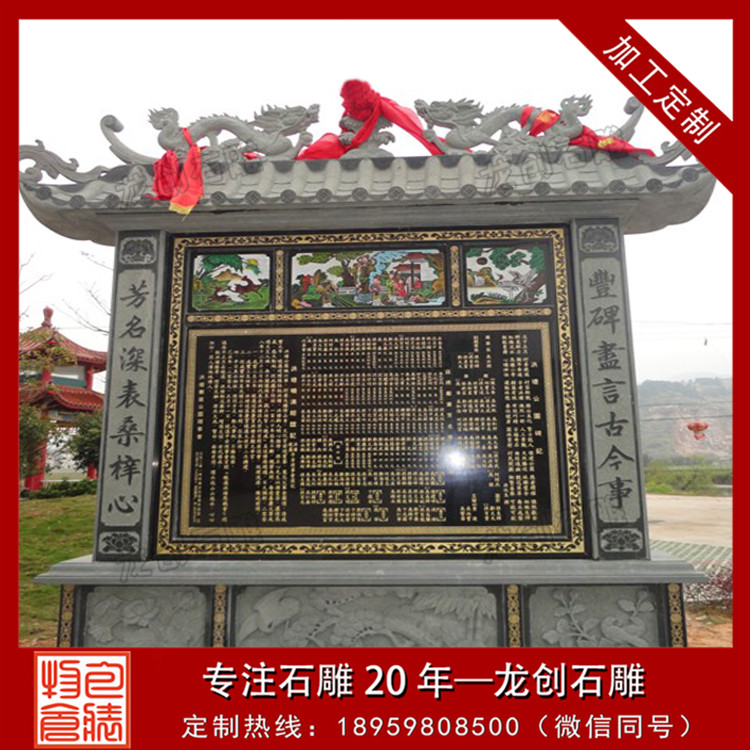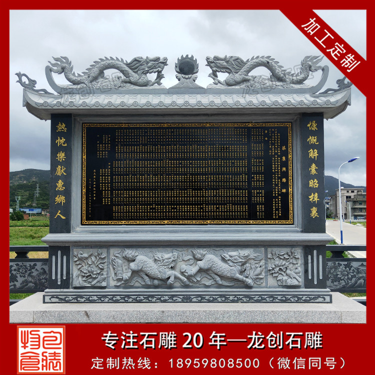 設計特點:通常由一塊長方形的石頭精心雕刻而成,上面刻有詳盡的文字內容,如表彰對象的姓名、事跡、貢獻等,以及相關的圖案或浮雕,以生動形象地展現(xiàn)功德事跡的輝煌與偉大。
