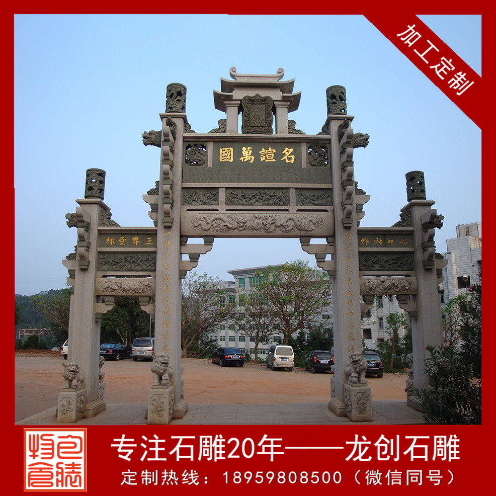 在建造中石牌坊是常常會(huì)用到,展現(xiàn)一個(gè)地區(qū)建造的風(fēng)采和相貌,這對(duì)牌坊的款式選擇是比較考究的。石牌坊的造型和標(biāo)準(zhǔn)許多,比如典型的有單門(mén)牌坊、三門(mén)牌坊以及五門(mén)牌坊,從款式上看,有不出頭牌坊和沖天式牌坊,依據(jù)地域的運(yùn)用不同,石牌坊的造型規(guī)劃也會(huì)有很大的不同,在選擇的時(shí)分可以先考慮到當(dāng)?shù)氐奈幕惋L(fēng)土人情等,保證可以雕琢出更為精致的石牌坊著作。石牌坊制作,石牌坊廠家應(yīng)認(rèn)準(zhǔn)龍創(chuàng)石雕。龍創(chuàng)石雕歡迎您的致電!