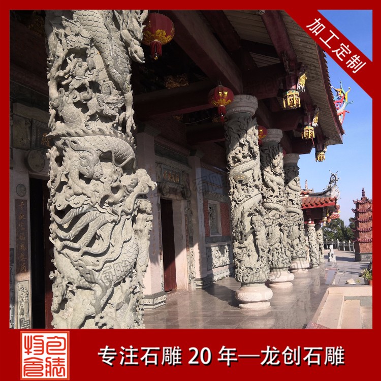 寺廟石龍柱在選擇石材上面建議使用天青石,因?yàn)樘烨嗍@種石材顏色比較接近古建筑,和廟宇、祠堂、寺院比較搭配,石龍柱雕刻是以龍的形象作為根本,在石柱上進(jìn)行雕刻,更好的展現(xiàn)出龍的各種樣式,就這樣簡(jiǎn)單的一根石柱子,上面雕刻了不僅是龍的造型這么簡(jiǎn)單,其實(shí)里面蘊(yùn)藏了很多文化。是我們龍的傳人的內(nèi)涵。