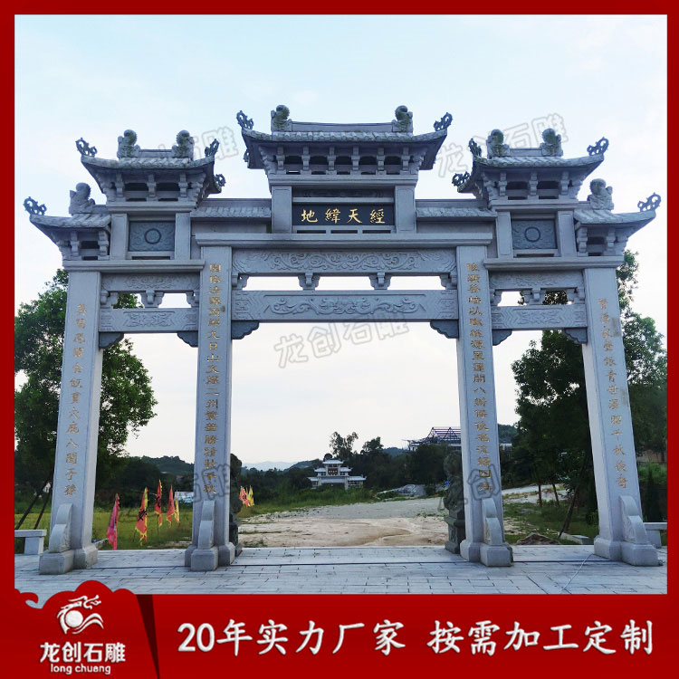 2、 三門三樓石牌坊寬度12米,石牌坊價(jià)格是10-16萬。