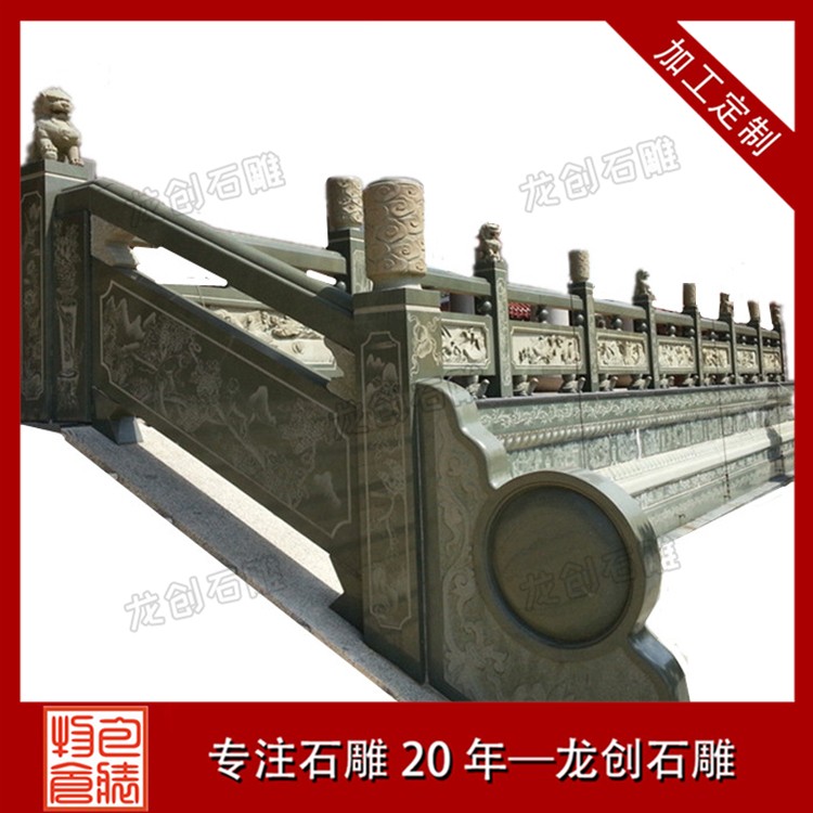 4.材質多樣:石雕護欄的材質多樣,包括青石、花崗巖、漢白玉等,不同的材質具有不同的紋理和色彩,能夠滿足不同環境和需求下的使用要求。
