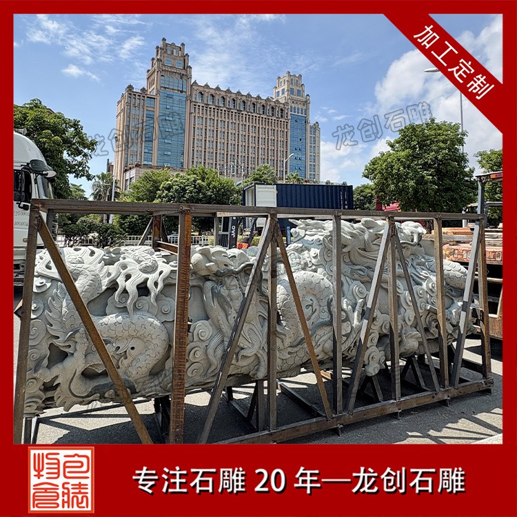 • 雕刻技法:局部磨光面+荔枝面+機切面,龍身浮 12-15公分(龍身分三段)