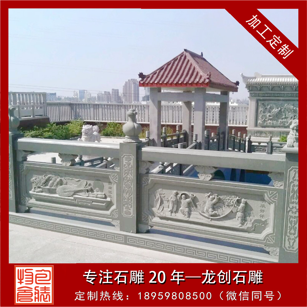 在欄桿石材的硬性請求上,青石由于構造愈加穩定,幾百年以后都仍然能夠保管的十分良好,受熱脹冷縮的反響比擬小,易于雕琢,能夠滿足寺廟欄桿絕大局部的外型雕琢請求,在很多鏤空雕的欄桿外型也能夠比擬輕松的雕琢,這是其他石材所不能到達的。接下因由青石欄桿廠家龍創石雕為大家引見廣東青石欄桿哪里好。