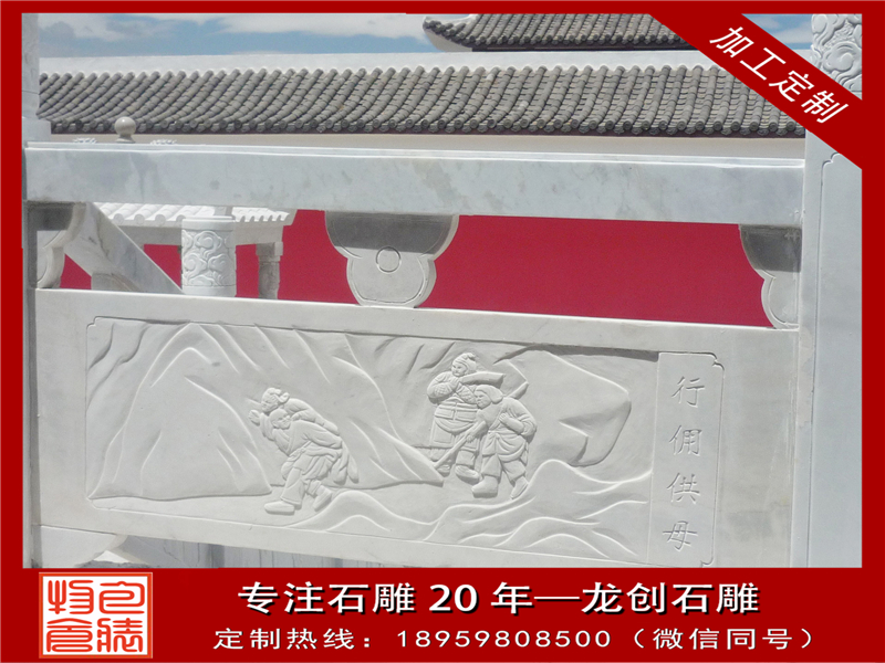 以上就是大部分花崗巖石欄桿欄板上雕刻的圖案的含義了,其實主要還是看建造者所想表達什么,還有一些例如人物或者歷史事件的欄桿,這些所表達的含義都不同。龍創石雕工藝有限公司有著長期生產加工花崗巖石欄桿、青石欄桿、大理石欄桿漢白玉欄桿、河道石欄桿、石拱橋等經驗,期待您的來電合作!