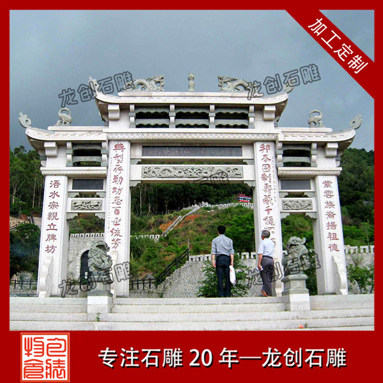 石雕牌樓的材質有很多,青石、花崗巖、漢白玉都可以制作石牌樓,材質不一樣,石牌樓價格也不一樣,其中價格最貴的是漢白玉石雕牌樓,由于漢白玉石材資源稀缺,開采量少,因此價格高,漢白玉石牌樓定制選惠安龍創(chuàng)石雕,雕刻工藝精湛,產(chǎn)品質量上乘,源頭廠家,價位合理。支持來圖來樣定制,龍創(chuàng)石雕專業(yè)為您服務,歡迎咨詢考察。