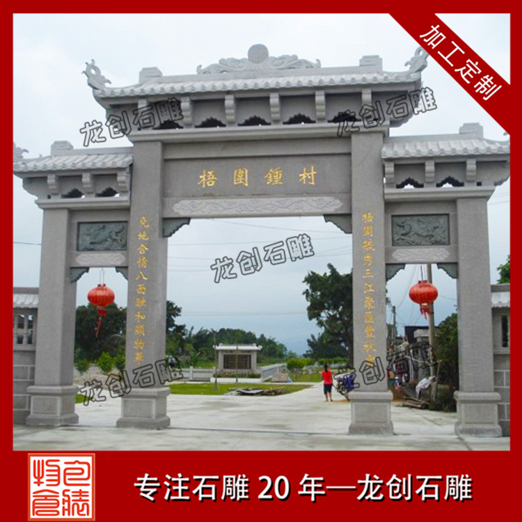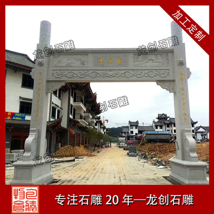 村門牌坊雕刻是一個村莊的門面,同時也具有裝飾的作用,有些道路比較窄,那就要選擇農村簡易門樓牌坊,一般也被稱為單門牌坊。牌坊并不是越大越好,只有適合的才是好的。