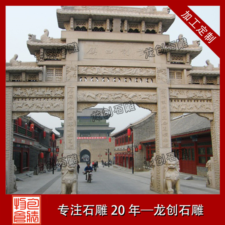 石雕牌樓作為中國有文化內涵的古建筑之一,建在景區入口、寺廟入口、村莊入口居多,是一道值得欣賞的亮麗風景線,石雕牌樓生產廠家,龍創石雕,生產各種樣式尺寸的石牌樓,質優價廉,歡迎直接來電咨詢選購。