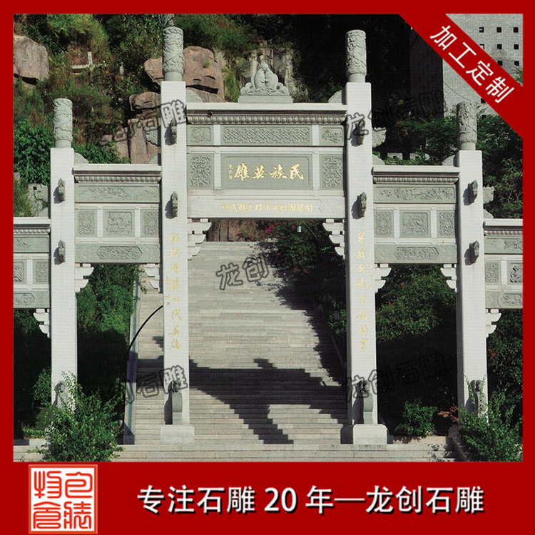 惠安龍創石雕長期供應三門五樓石雕牌坊 三門五樓山門石雕、各式各樣石雕牌坊、石雕牌樓等,也支持來圖來樣定做,歡迎來電咨詢。